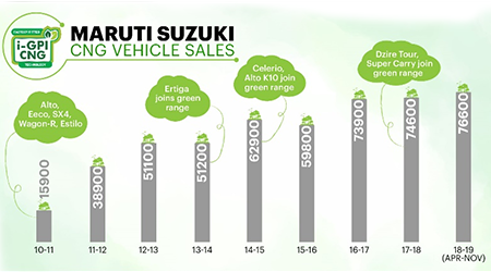 Maruti Suzuki has achieved the milestone of five lakh CNG vehicles sales in India, cumulatively. The Company presently offers CNG option in seven of its models, which include Alto 800, Alto K10, WagonR, Celerio, Dzire, Eeco and Super Carry.